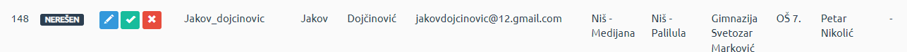 Мој ученик седмог разреда, коме сам ментор, је правилно поднео захтев за пријаву на такмичење из информатике али мени не излази његова пријава и самим тим не могу да је одобрим, а прошао је квалификације. Све податке је лепо унео. Да ли можете да ми помогнете?